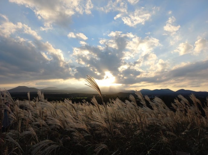 바로 그 이유는 한라산과 오름들 사이에 펼쳐진 억새로 이루어진 모습이 장관이기 때문입니다!